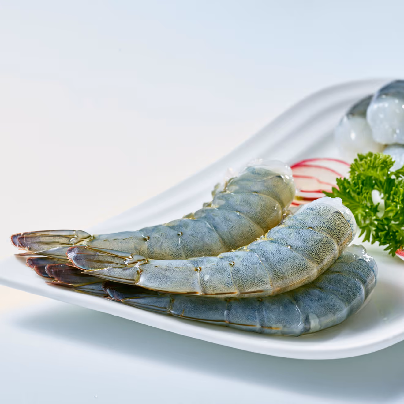 Available shell-on or peeled, with a pearl-grey raw hue that turns vibrant pink when cooked; consistent sizing and high yield support year-round availability.