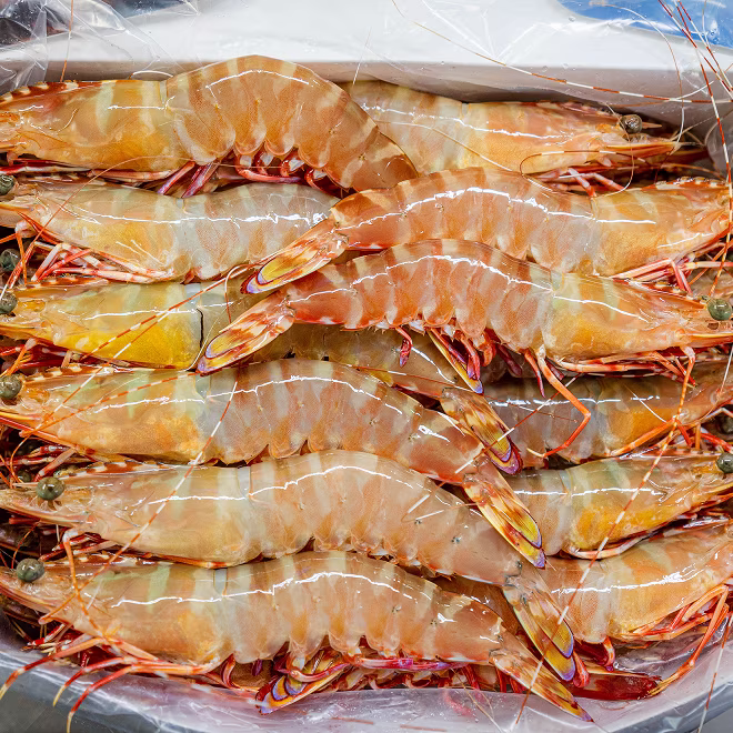 Wild-caught off Australia’s Skull Island, these giant tiger prawns are MSC certified, known for their bold size, striking dark stripes, and sweet clean flavor. Snap-frozen within an hour of harvest to ensure optimal quality.